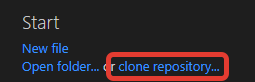 After installing and opening VSCode select Clone repository.